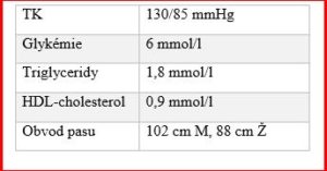 Tabulka: Základní kritéria metabolického syndromu TK 130/85 mmHg