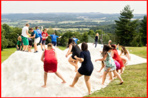 Haldy sněhu ve Ski areálu Monínec v parném létě inspirovaly finalistky MISS Prima Křivky k bitvě sněhovými koulemi.