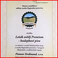 „Jsme velmi rádi, že bylo naše nové bezlepkové pivo oceněno, je to novinka letošního roku, která se postupně dostává do povědomí lidí“ uvedl Petr Dařílek. Bezlepkové pivo Ferdinand je obdobou klasického dvanáctistupňového světlého ležáku Prémium ovšem s tou výjimkou, že si na něm mohou pochutnat bez obav i lidé nemocní celiakií. Výrobek se podrobil zkouškám v několika akreditovaných laboratořích. Poprvé ho ochutnali návštěvníci 12. fóra celiaků v PVA Expo Praha Letňany, které se konalo 27. května k Mezinárodnímu dni celiakie.