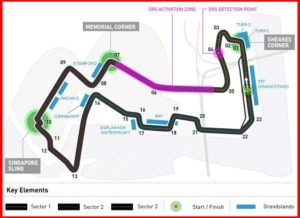 Extrémní klimatické podmínky, náročnost a délka samotné trati činí z Velké ceny Singapuru jednu z nejnáročnějších cen v mistrovském kalendáři Formule 1. Mnozí jezdci ji označují za „výzvu roku“. Součástí šampionátu je od roku 2008, okruh dlouhý 5,073 km musí jezdci zdolat 61krát. Kvůli charakteru trati jezdci často bojují s dvouhodinovým limitem pro závod. Okruh byl v roce 2013 upraven. Ze zatáčky číslo 10 zvané Sling byla odstraněna původní šikana, jež byla označována za zbytečně pomalou. To sice mělo přinést až o sekundu rychlejší časy, avšak rekord nové trati, který zajel Sebastian Vettel (1:48:574) je stejně téměř o tři vteřiny pomalejší, než původní čas Kimiho Räikkonena z roku 2008 (1:45:599). Ideální stopu musí jezdci v monopostech udržet ve 23 zatáčkách. Absence delších rovinek tu piloty nutí k maximální koncentraci po dobu celého závodu.