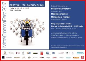 Si è tenuta oggi al cinema Lucerna di Praga la conferenza stampa di presentazione del MittelCinemaFest 2017, il Festival centro-europeo del cinema italiano che taglia il traguardo della V edizione per la Repubblica Ceca ampliando il proprio circuito ad Ostrava (il 7 e l’8 dicembre al cinema Luna) e tornando per il terzo anno consecutivo a Brno (dal 9 all’11 dicembre al cinema Lucerna). All’incontro sono intervenuti l’Ambasciatore d’Italia in Repubblica Ceca, Aldo Amati, il Direttore dell’Istituto Italiano di Cultura di Praga, Giovanni Sciola, il Segretario generale della Camera di Commercio e dell’Industria italo-ceca, Matteo Mariani, e i rappresentanti della Film Europe, Kristýna Haklová, e della Mirius Film, Martina Kalová.