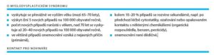 Myelodysplastický syndrom (MDS) představuje velmi různorodou  skupinu onemocnění kostní dřeně, jejíž příčina není ve většině případů známá. U zdravých osob produkuje kostní dřeň tři druhy krevních buněk – červené krvinky (erytrocyty), bílé krvinky (leukocyty) a krevní́ destičky (trombocyty). Všechny tři druhy vycházejí ze společné kmenové (zárodečné) buňky. Nezralé krevní buňky, které za normálních okolností vyzrávají ve funkční červené a bílé krvinky či krevní destičky, se nazývají blasty.