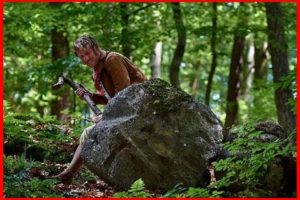 Asi nejobtížnější scénou byl pád kamene. Vzhledem k rozměru samozřejmě kámen nebyl reálný, ale šlo o uměle vytvořenou rekvizitu. Kámen  musel být lehký, aby herce při natáčení nezranil, mohlo se s ním snadněji manipulovat, ale zároveň musel působit mohutně, protože zlý sedlák Kopyto jím chtěl Jana zavalit. Proto byl kámen vytvořen ze speciálního tvrzeného polystyrénu,  aby vydržel opakované záběry pádu.  Na povrchu měl barevný nástřik a polep, kterým se vytvořily různé nerovnosti.  Aby byla vytvořená iluze kamene, který dlouho ležel v lese, proto na něj rekvizitáři nalepili umělé listy  a napodobeniny mechu, aby působil zcela autenticky. Pád kamene se točil skutečně v reálu v exteriérech v lese.
