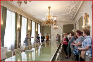 Návštěvníky palácem provedli průvodci a blíže je seznámili s jeho historií. Společně si prohlédli například Zelený salonek, kde zasedaly předválečné a určitou dobu protektorátní vlády a kde tehdejší československá vláda generála Jana Syrového jednala na svém mimořádném zasedání o podmínkách mnichovské dohody. Její kopii v němčině měli návštěvníci si možnost prohlédnout.