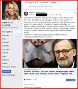 Facebook nepovolil administrátorovi profilu publicistického serveru Kupredudominulosti.cz . placenou propagaci příspěvku s aktivistou a bývalým policejním prezidentem Stanislavem Novotným. Novotný i administrátor mluví o cenzuře. V rozhovoru Novotný velmi kriticky hovoří o současné společenské atmosféře a poměrech v médiích.