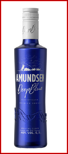 Nová vodka s výjimečným obilným lihem obsahujícím z 80 % pšenici si vyžádala nový, nápaditý design. Zahalená do nebesky modré lahve vyzařuje Amundsen Deep Blue svou magickou sílu a přitažlivost, kterou nás dokáže upoutat jedině potemnělá obloha blížící se noci. Vstupte do její hluboké, nekonečné náruče se svými přáteli a objevujte sílu prémiové 40% vodky, která je díky šestinásobné destilaci a speciálnímu procesu filtrace přes aktivní uhlí jiskrně čistá a jemná. Stáhněte si z nebes o kapku větší zážitek, než na který jste byli zvyklí. Síla Deep Blue je na dosah!