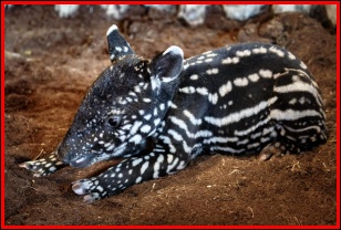 Mládě vzácného lichokopytníka přivedla na svět samice Indah v neděli 19. dubna odpoledne po více než čtrnácti měsících březosti. Malý tapír čabrakový je samec a zatím si vede dobře. Typické kávově hnědé zbarvení s podélným bílým pruhováním a skvrněním začne ztrácet zhruba za dva měsíce a postupně se přebarví do černobílé podoby dospělých. Otcem mláděte je samec Niko a pro tento pár jde již o druhého potomka. Prvním byl v roce 2015 slavný Budak Puntja, přezdívaný Punťa, který dnes pod jménem Moke žije ve vyhlášené Zoo Tchaj-pej na Tchaj-wanu a letos se sám stane otcem.