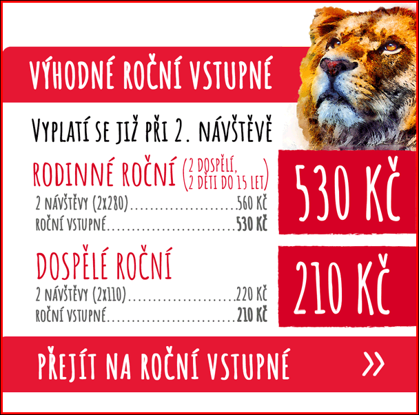 „Přesně na míru takovým milovníkům zvířat je ušitý program zvýhodněného ročního vstupného, které se zájemcům vyplatí už při druhé návštěvě u nás,“ říká ředitel ZOO Tábor Evžen Korec. Jednorázová vstupenka pro dospělého návštěvníka stojí 110 korun, při druhé návštěvě by tedy z peněženky vydal celkem 220 korun. Ovšem když si namísto jednorázové vstupenky pořídí vstupenku roční, zaplatí za ni jen 210 korun a může chodit do zoologické zahrady v Táboře až do konce roku kdykoliv se mu zachce – třeba každý den!