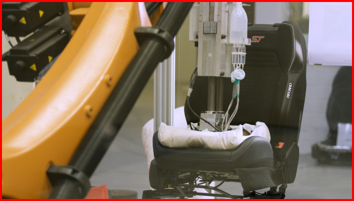 Velkou výzvou je podrobný a komplexní pohled na sedadla i celý proces jejich využití. Jak se lidé dostanou do svých aut? Které síly z toho vyplývají? Jak ovlivňuje velikost a hmotnost řidiče sedadlo a materiál? Automobilový výrobce odpovídá na tyto otázky prostřednictvím zkušebního postupu. Ford simuluje použití sedadel pomocí robota KUKA řady KR QUANTEC. Na rameni automatu je namontována figurína OccuForm, která na předdefinovaných kontaktních bodech zatěžuje sedadlo automobilu a zaznamenává křivky síly a dráhy. Celkový systém se nazývá KUKA OccuBot a je řízen pomocí KUKA System Software 8.3 a softwaru KUKA.OccuBot 3.1.