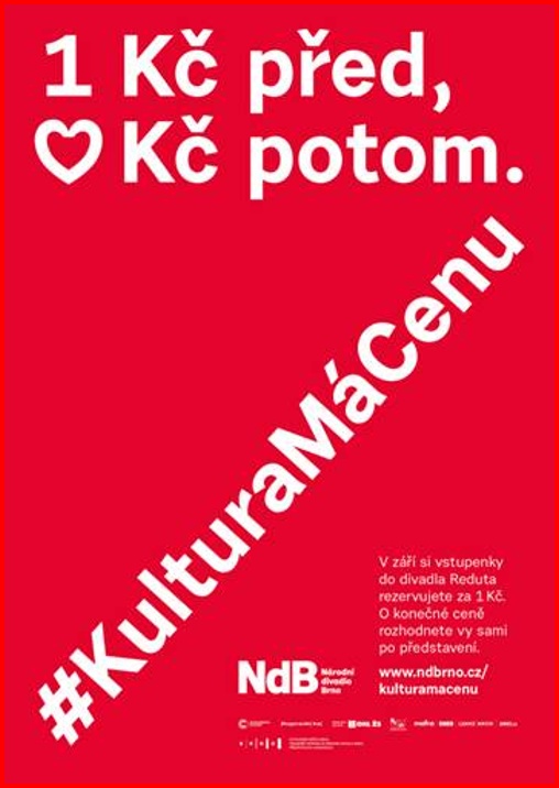 Národní divadlo Brno připravilo pro veřejnost mimořádnou akci, která nemá v českém divadelním kontextu obdoby. Diváci si budou moci od 22. června rezervovat vstupenky na zářijová představení do divadla Reduta za symbolickou 1 Kč. O konečné ceně své vstupenky rozhodnou až v závěru večera sami.