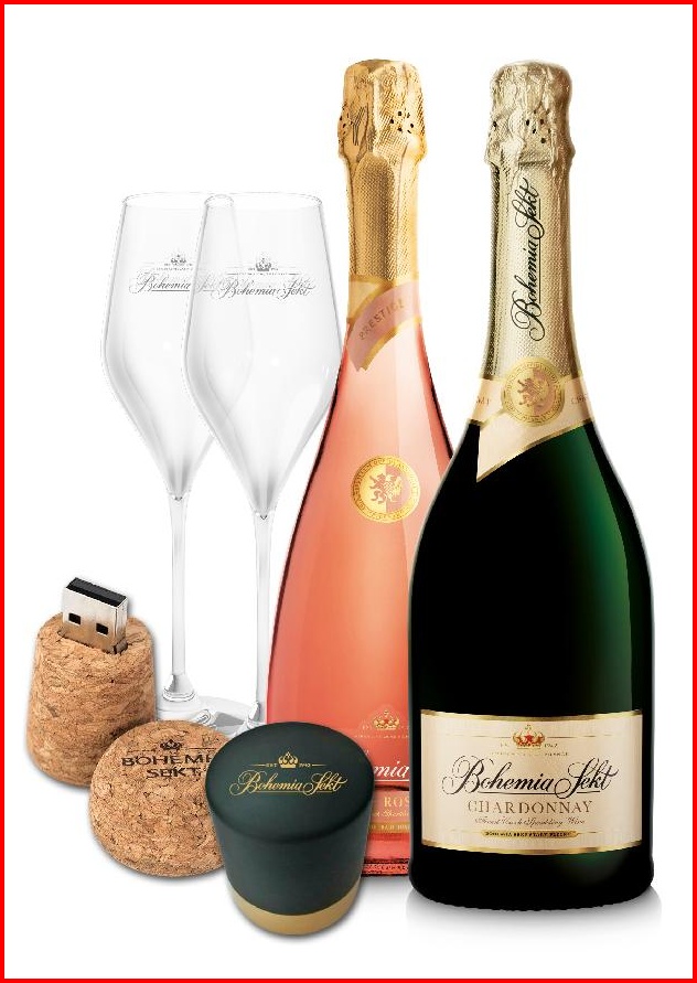 Pokud si dá vaše výjimečná žena raději sušší sekt, pořiďte jí dárkový set, který obsahuje Bohemia Sekt Prestige rosé brut z cuvée odrůd Rulandské modré, Frankovka a Zweigeltrebe z vybraných vinic jižní Moravy, a elegantní sekt „Blanc de Blancs“ Bohemia Sekt Chardonnay brut.