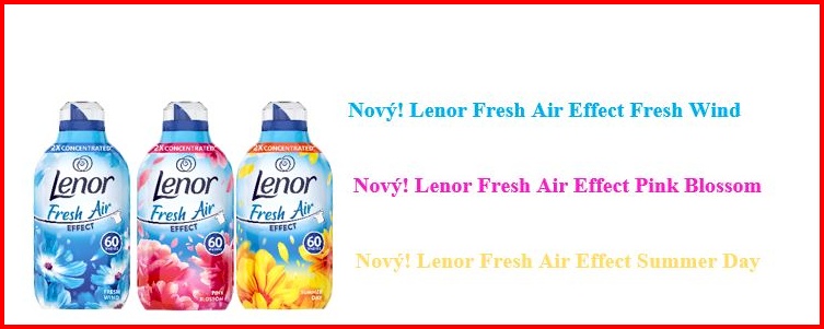 Proto přišla značka Lenor s inovativním řešením, díky kterému si budou moci voňavé a svěží prádlo užít úplně všichni. Nová revoluční aviváž je 2x koncentrovanější, a právě inovovaná technologie zajistí dlouhotrvající svěží vůni přesně takovou, jakou vašemu čerstvě vypranému prádlu dává krásné počasí a svěží čerstvý vzduch. Nová řada aviváží Fresh Air Effect se pyšní třemi druhy dlouhotrvajících vůní – Pink Blossom, Fresh Wind a Summer Day.