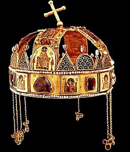 Maďarská svatá koruna je jednou z nejstarších věnných korun v Evropě. Byla vložena na hlavu našeho prvního krále, později svatého Štěpána, 25. prosince 1000 a stala se symbolem křesťanského Uherského království. Je však důležité poznamenat, že koruna, která byla v tento den vložena na hlavu krále Štěpána, není totožná s klenotem, kterým je Svatá koruna dnes, neboť svou současnou podobu získala později, mezi lety 1100 a 1300.