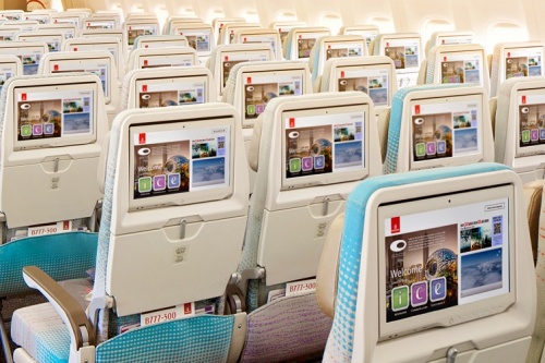 Chytré bezdotykové ovládání pokračuje i na palubě letadla, kde je v aplikaci Emirates k dispozici digitální menu, v němž si zákazníci rovněž mohou vytvořit preferovaný seznam skladeb v rámci zábavního systému ice.