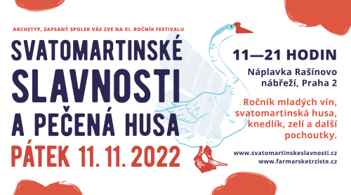 Kolem 35 stánků, 20 vinařů z Čech a Moravy, degustace svatomartinských vín, husí speciality a bohatý doprovodný program – takový bude 11. ročník festivalu mladých vín „Svatomartinské slavnosti a pečená husa“. Akce proběhne v pátek 11. listopadu od 10 do 21 hodin na náplavce Rašínova nábřeží v Praze 2 mezi Palackého a Železničním mostem.