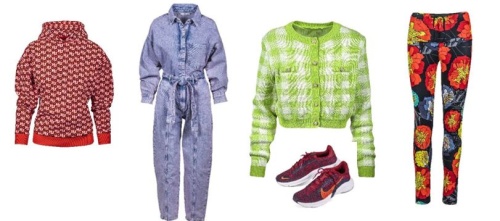 Mikina Hugo Boss z bavlny z udržitelné kolekce, obchod Lime Concept Store, Fashion Arena Prague Outlet, původní cena 3 790 Kč, outletová cena 2 653 Kč. Obuv Nike z recyklovaných materiálů, obchod Nike Store, Fashion Arena Prague Outlet, původní cena 2 699 Kč, outletová cena 1 889 Kč. Overal Mango z bavlny z kolekce Committed, Fashion Arena Prague Outlet, původní cena 1 999 Kč, outletová cena 999 Kč. Svetřík Mango z recyklované bavlny a polyesteru, Fashion Arena Prague Outlet, původní cena 1 299 Kč, outletová cena 899 Kč. Legíny Adidas z recyklovaných materiálů, Fashion Arena Prague Outlet, původní cena 1 899 Kč, outletová cena 986 Kč.