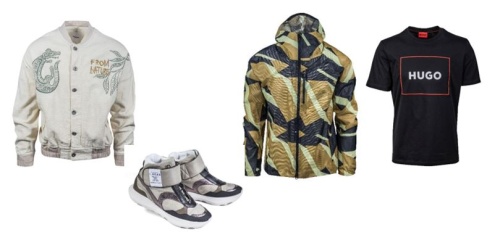 Obuv Högl z udržitelných materiálů, Fashion Arena Prague Outlet, původní cena 6 799 Kč, outletová cena 2 039 Kč. Bunda Desigual z bavlny s BCI certifikací, Fashion Arena Prague Outlet, původní cena 3 999 Kč, outletová cena 1 119 Kč. Bunda Adidas ze 100% nylonu, Fashion Arena Prague Outlet, původní cena 3 899 Kč, outletová cena 1 911 Kč. Tričko Hugo Boss z organické bavlny, obchod Lime Concept Store, Fashion Arena Prague Outlet, původní cena 1 890 Kč, outletová cena 1 323 Kč.