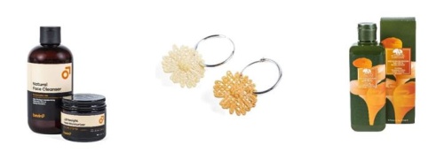 Set skincare essentials Beviro – přírodní kosmetika, obchod Luxury Zone, Fashion Arena Prague Outlet, původní cena 1 559 Kč, outletová cena 1 089 Kč. Náušnice Mango ručně barveny přírodními látkami, Fashion Arena Prague Outlet, původní cena 799 Kč, outletová cena 549 Kč. Zklidňující lotion Origins – veganský, obchod The Cosmetics Company Store, Fashion Arena Prague Outlet, původní cena 950 Kč, outletová cena 665 Kč.