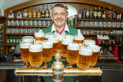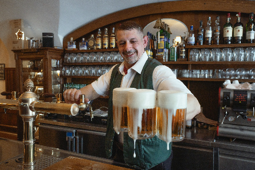 Tohle všechno si musí dobře pamatovat, protože spokojený štamgast je alfou a omegou úspěšně hospody. Zvlášť v případě pivního chrámu, jakým je restaurace U Pinkasů. Ale také si všímá, zda není některý z hostů smutný. Aby ho rozesmál a zlepšil mu náladu, může