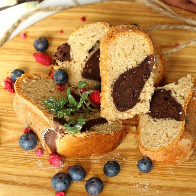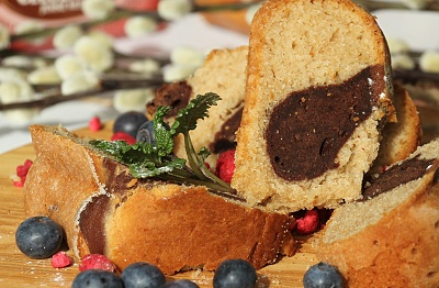 Nakonec z hotového těsta odlijte asi třetinu do použité misky a vmíchejte do ní kakao. Bábovkovou formu důkladně vymažte máslem a vysypte celozrnnou špaldovou moukou nebo kokosem. Někdy se může stát, že bude těsto příliš hutné, tak jej případně trochu dolaďte mlékem.