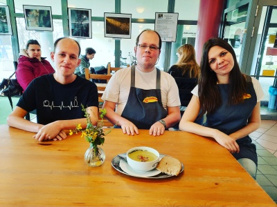 TA KAVÁRNA na pražském Vyšehradě je jedním z projektů neziskové organizace Borůvka Praha o.p.s. Už téměř 16 let tu funguje tréninkový program, jehož hlavním cílem je poskytnout lidem s postižením možnost získat základní pracovní návyky a díky tomu se pak lépe uplatnit na běžném trhu práce.