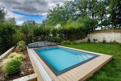 „Velmi praktickým doplňkem každého bazénu je zastřešení, které lze pořídit už ve chvíli stavby bazénu nebo kdykoliv později. Jeho pořízení doporučujeme především rodinám s malými dětmi. Kromě zvýšení bezpečnosti kolem bazénu šetří zastřešení také čas při čištění bazénu, protože ho chrání proti mechanickým nečistotám, jako je například napadané listí,“ vysvětluje Daniel Bareš, marketingový manažer ve společnosti ALBIXON, a dodává: „Kromě nízkých a podchozích zastřešení jsou trendem především v malých zahradách také terasová zastřešení, která po zavření umožňují využít plochu bazénu například k posezení. Nebudete tak mít problém pohostit a usadit i větší skupinu přátel.“ Už při výběru bazénu navíc můžete volit z několika barev vnitřní stěny bazénu, různých typů schodů a osvětlení.
