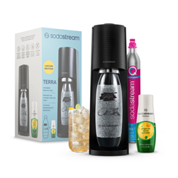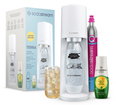 Máte rádi moderní design, který zapadne do každého interiéru? Megapack TERRA Ginger Ale bude pro vás skvělou volbou! Obsahuje výrobník TERRA v elegantní bílé nebo sofistikované černé a designovou litrovou lahev FUSE z Tritanu, kterou lze mýt v myčce. Nechybí bombička se systémem Quick Connect pro snadné a rychlé zacvaknutí a jako bonus příchuť Ginger Ale, ze které připravíte až 9 velkých SodaStream lahví zázvorové limonády. Díky tlačítku na vrchní straně, kterým regulujete intenzitu sycení, si připravíte až 80 litrů osvěžující perlivé vody.