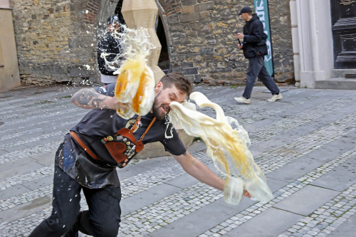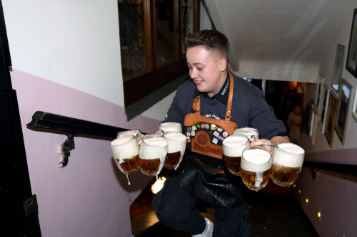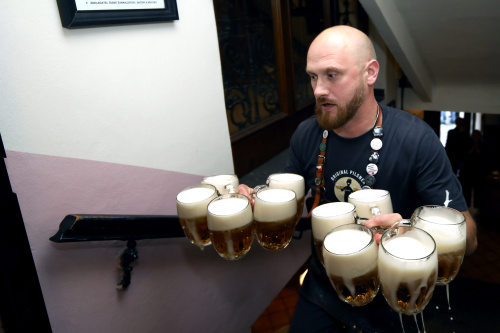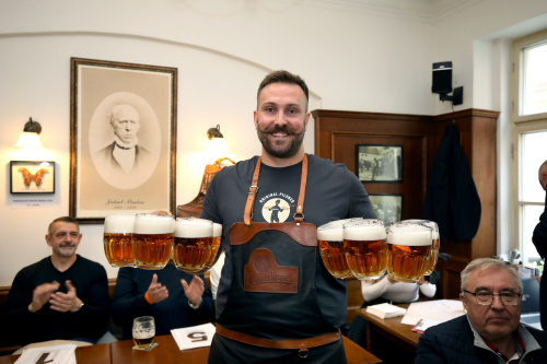 Výčepní zdolali Pinkasovu noční můru. Vyběhli 41 schodů s 10 půllitry piva