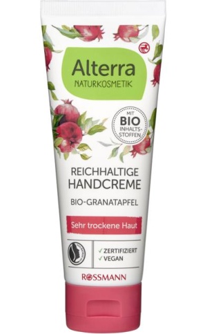 Pokožka vašich rukou je nejvíce namáhaná z celého těla. Dopřejte jí přímo královskou péči s bio olejem ze semen granátového jablka, bambuckým máslem a olivovým olejem. Dodejte svým ručkám jedinečnou hebkost, kterou zajistí krém na ruce privátní značky Alterra. Jednoduše se vstřebává a nezanechává mastný film. Zahalte své ruce do neviditelného brnění a dodejte jim potřebnou výživu. Vaše ruce budou sametově hebké a hydratované.