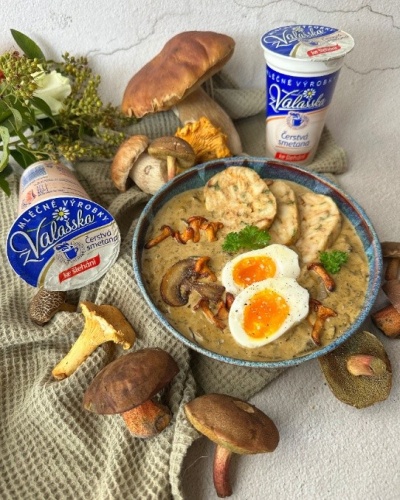 Podzim je obdobím plným barev, babího léta, procházek v lese, sběru hub a zpracování plodů z našich zahrádek a zahrad. Toto roční období nabízí širokou škálu zeleniny, kterou můžeme využít v našich kuchyních. Ačkoli každý z nás má své osvědčené recepty, nechte se inspirovat originálními recepty Mlékárny Valašské Meziříčí, které využívají čerstvé mléčné výrobky. Váš domov se naplní vůní podzimu a jistě sklidíte nejednu pochvalu. Vyzkoušejte například Houbovou omáčku s karlovarskými knedlíky a vejci s Čerstvou smetanou z Valašska nebo Pečenou dýni se slaninou, ořechy a Smetanovým jogurtem z Valašska. Dýně je nejen lahodná, ale také bohatá na látky prospěšné pro zdraví. Neomezujte se pouze na tradiční dýňovou polévku – dýně, která pochází ze Střední Ameriky, je jednou z nejstarších plodin, známou již 5000 let před naším letopočtem. Obsahuje až devadesát procent vody, vlákninu, vitamíny a minerály, jako jsou vitamíny C, A, E, K, B1, B2, B3, B5, B6 a minerály železo, měď, draslík a hořčík. Houby jsou také prospěšné našemu zdraví, zejména srdci. Obsahují vitamíny a minerály, ale téměř žádné kalorie. Například hřiby nebo lišky obsahují nízké množství sodíku, což nezatěžuje ledviny a je vhodné pro osoby s vysokým krevním tlakem. Obsahují také vysoké množství draslíku, který pomáhá snižovat krevní tlak. Houby jsou bohaté na riboflavin a niacin (vitamíny B2 a B3) a pomáhají snižovat hladinu cholesterolu. Jsou také dobrým zdrojem selenu, účinným antioxidantem, který spolu s vitamínem E pomáhá tělu zbavovat se škodlivých radikálů. Houby podporují imunitu a pomáhají snižovat riziko rakoviny. V tradiční čínské medicíně se používaly k léčbě nachlazení a chřipky a moderní studie naznačují, že podporují činnost imunitního systému.