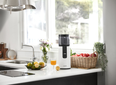 Model H400 z řady EasyPress je skvělou volbou nejen pro milovníky zdravé životosprávy, ale i pro všechny, kdo chtějí šťávy připravovat rychle a jednoduše. Díky inteligentnímu zásobníku si poradí i s většími kousky ovoce a zeleniny, což šetří čas při přípravě. Snadno se čistí, a kromě šťáv si jednoduše připravíte i hustší ovocné nápoje bohaté na vlákninu nebo domácí zmrzlinu. Prostě ideální pomocník pro každou halloweenskou párty!