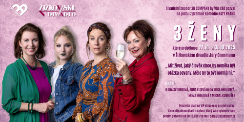 Soubor 3D company uvede v pondělí 27. října 2025 od 19:00 premiéru současné britské komedie 3 ŽENY od známé autorky, scénáristky a komičky Katy Brand. Hru v českém překladu Pavla Dominika režíruje Martin Vokoun, titul bude v Praze uveden poprvé. Hrát se bude na hlavní scéně Žižkovského divadla Járy Cimrmana. Druhá premiéra se uskuteční 31. října 2025.