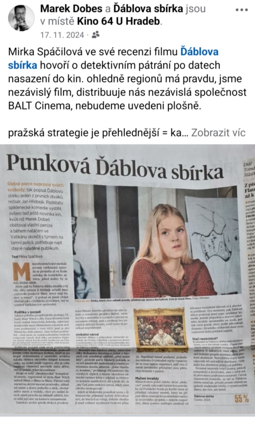 Pokračování kontroverzního snímku Ďáblova sbírka otevírá dveře do ještě bizarnějšího, syrovějšího a groteskně černohumorného světa. Historie se tu proplétá s techno-okultními rituály, mocenskými hrami a absurdně pompézními vlasteneckými výstupy bezmocných, kteří sice žádnou mocí nedisponují, ale o to víc křičí.