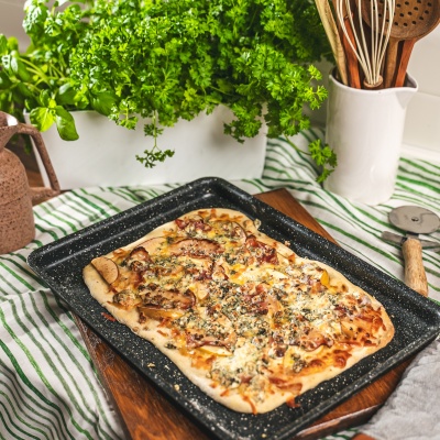 Zrodila se z chudoby, dobyla svět a dnes patří mezi nejoblíbenější pokrmy na světě. Pizza – symbol italské vášně pro jídlo – prošla dlouhou cestou od skromného plochého chleba až po moderní fenomén. Existují nespočty ingrediencí, které už téměř nikoho nepřekvapí. My vám přinášíme skvělou a neotřelou kombinaci, která vládne letošnímu podzimu: modrý sýr, jablko, slanina a javorový sirup. Toto spojení zaujme svou harmonickou chutí, která nadchne každého gurmána!