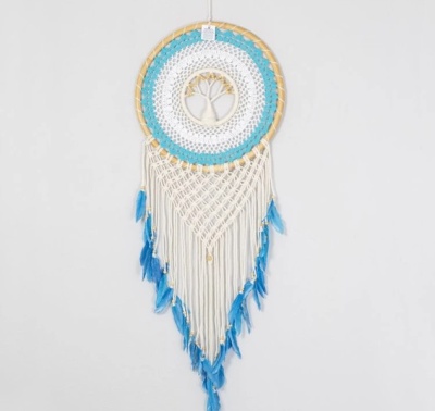Nádherný lapač snů s bambusovým kruhem a korálky se symbolem stromu života v krásné tyrkysové barvě vnese do vašeho domova klid, harmonii a útulnou atmosféru. Jemně se pohupující peříčka a elegantní design promění každý kout místnosti ve stylovou dekoraci, která zároveň připomíná tradici lapačů snů.