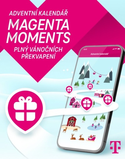 Adventní kalendář je už nedílnou součástí zákaznického programu Magenta Moments. Pro letošek získal podobu pohádkové vánoční vesničky, skrz kterou vede cesta plná odměn až na severní pól. První adventní neděle 30. 11. tak odkryje políčko se soutěží o rodinný zájezd do finského Rovaniemi, vesničky Santa Clause. Další neděle pak nabídnou i jiné atraktivní výhry – například pobyt v Benátkách nebo Dublinu.