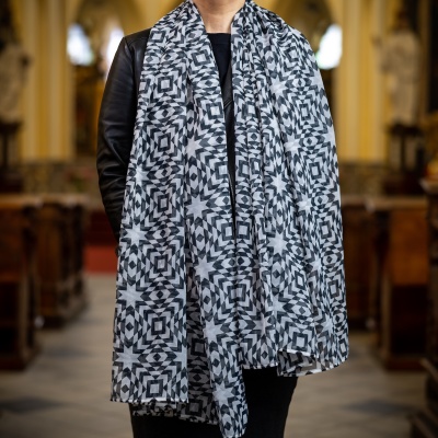 Vlajkovou lodí nabídky je designová řada Santini, inspirovaná dlažbou v presbytáři katedrály od Jana Blažeje Santiniho Aichela. Zvláštní pozornost poutá například šátek Santini Immortalis, který se již nyní stal bestsellerem. „Milujeme tento šátek! Jeho design je přes 300 let starý a jeho autorem je sám architekt Santini,“ uvádí Radka Krejčí. Moderní zpracování geometrického motivu tvoří elegantní módní doplněk, který historii skutečně dýchá. Kromě šátků patří mezi oblíbené produkty také stylové ledvinky, tašky a doplňky s motivem Santiniho dlažby.