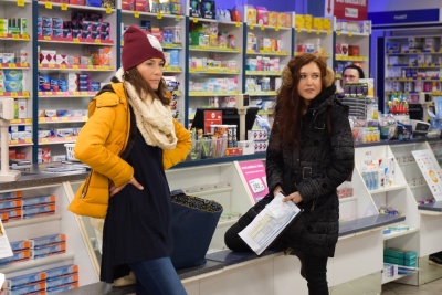 Zatímco Igora Bareše, který účinkuje v roli otce, obsadila Toulová do svého filmu už popáté, s Veronikou Žilkovou se na place potkala poprvé a spolupráci si nemůže vynachválit. Oblíbená komediální herečka totiž pokračovala v natáčení navzdory zranění nohy, se kterým se nechala dokonce zavřít do vězeňské cely. „Veronika k nám na plac dorazila s ortézou na noze. Měla jsem obavu, protože šlo o pohybové scény, ale na jejím výkonu nebylo zranění nijak znát,“ vzpomíná režisérka na natáčení ve Vondráčkově továrně, stejné lokaci, kde vznikal i miliardový hit Spider-Man: Daleko od domova. „Samozřejmě nejvíc jsme si užily společnou scénu s Veronikou, kdy do sebe ládujeme jednoho panáka višničky za druhým. Nechaly jsme si ji až na samý konec dne a opakovaly tolikrát, že by se chvílemi mohlo zdát, že točíme spíš Deník alkoholičky než shopaholičky,“ dodává režisérka s nadsázkou.