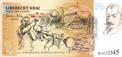 „Myšlenku vydat emisi bankovek s deseti hlavními městy Libereckého kraje jsme rádi podpořili. Jejich grafická podoba vystihuje řemesla a převládající průmyslové zaměření daných měst i částí regionu vycházející z místní historie. Právě připomínka tradice, zručnosti a umu našich předků dělá z emise tolarů unikátní projekt,“ uvádí Martin Půta, hejtman Libereckého kraje.