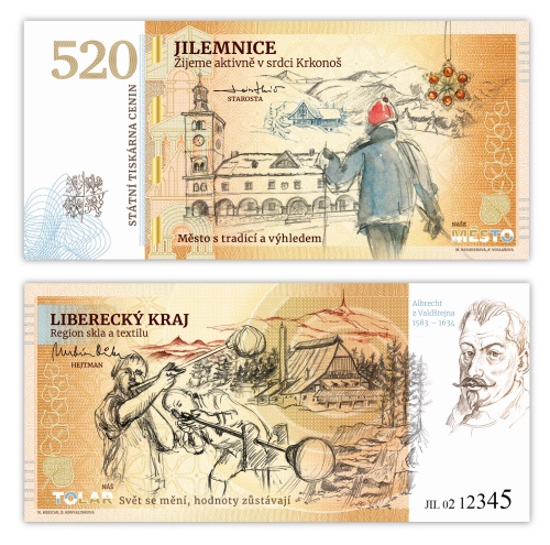 Projekt pamětních listů v podobě bankovek Libereckého kraje, tzv. Tolarů, dospěl do své finální fáze. Emise nyní čítá kompletní sérii deseti pamětních listů, které představují všechna větší města Libereckého kraje (ORP) a jejich jedinečný charakter, řemesla a tradice. Novými přírůstky do této sběratelské řady jsou čtyři významná města regionu: Semily, Tanvald, Železný Brod a Jilemnice.