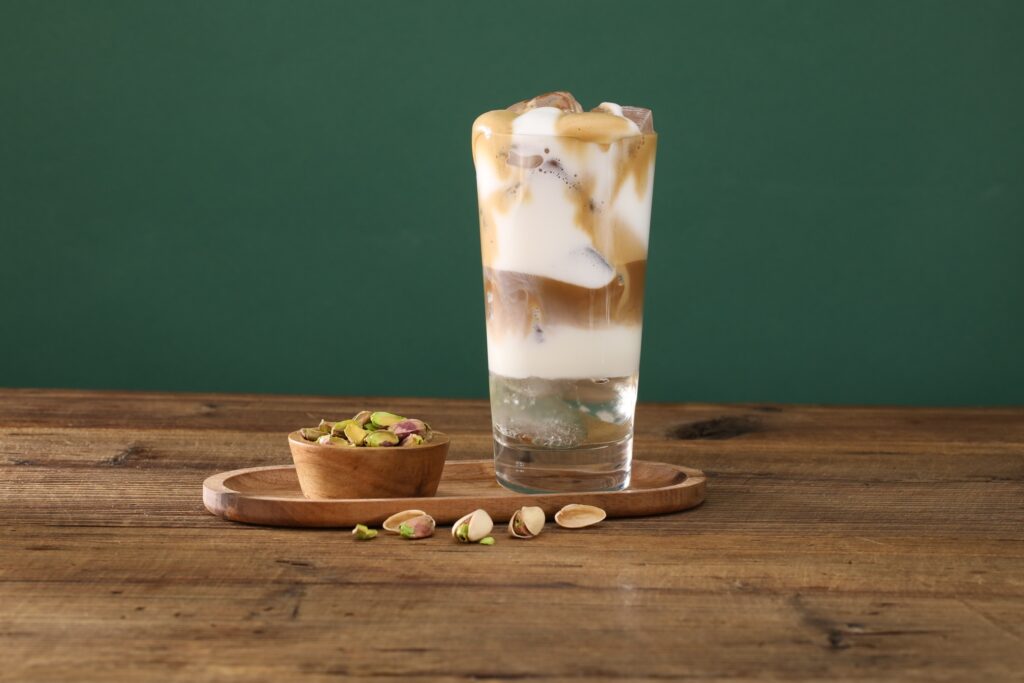 Pro ty, kteří i v zimě preferují svěží podání, je na vybraných čerpacích stanicích Shell v nabídce také Ledové Latte Macchiato s příchutí pistácie nebo perníku, kde se stejný kávový základ podává v ledové verzi.
