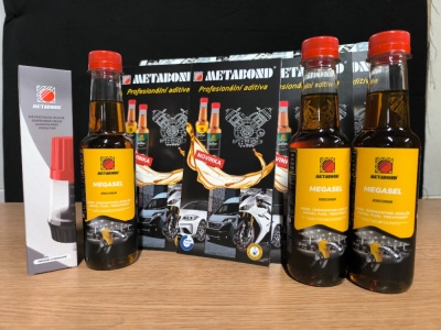 Metabond Megasel je aditivum do nafty určené pro vznětové motory. Čistí a maže vstřikovací systém a spalovací prostory, čímž zlepšuje proces hoření paliva. Hlavní výhodou je zvýšení cetanového čísla paliva o 8 %, což vede ke snížení spotřeby paliva a zvýšení výkonu motoru.