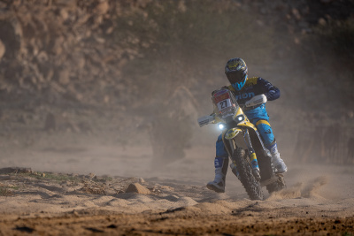 Těžká práce čekala na Milana Engela ve druhé etapě Dakarské rallye. 400 měřených kilometrů vedlo po kamenech a písečných cestách. „Bylo to o dost náročnější než v neděli. Terén obsahoval snad všechno možné, také vyschlé řečiště. Dával jsem si velký pozor v technických pasážích,“ popisoval jezdec z týmu ORION – Moto Racing Group, který v pondělí dojel na 27. místě se ztrátou 34 minut. Problémy v Saudské Arábii přivádějí také velbloudi – jednomu z nich se vyhýbal mladý Španěl Edgar Canet. „Je jich tady opravdu hodně,“ dodal Ervín Krajčovič.