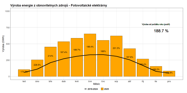 Spotřeba elektřiny roste v České republice kontinuálně už 16 měsíců a koresponduje s růstem ekonomiky. Spotřeba plynu sice velmi mírně roste, ale oproti období před energetickou krizí evidujeme značný stabilní pokles. Letos se velmi nepříznivě projevilo na výrobě elektřiny hydrologické sucho. Vodní elektrárny, které jsou významným zdrojem výroby OZE, tak vyrobily stejně jako v roce 2018 rekordně malé množství elektřiny. Proto byla v roce 2025 dominantní role fotovoltaických elektráren.