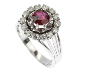 Platinový prsten s rubínem a diamanty – 180.000 Kč