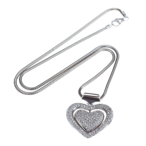 Symbol svátku zamilovaných zosobňuje zlatý náhrdelník s otočným diamantovým srdcem. Kombinace bílého zlata a třpytu diamantů vytváří šperk, který je elegantní a nepřehlédnutelný. Pohyblivé středové srdce dodává náhrdelníku rafinovanost a dynamiku.