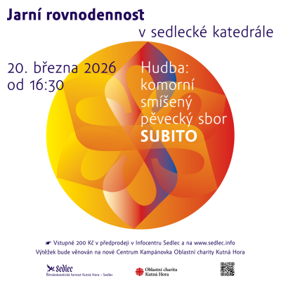 Jarní rovnodennost v Sedlci má také výrazný charitativní rozměr. Kompletní výtěžek ze vstupného poputuje Oblastní charitě Kutná Hora na opravu centra Kampanovka, které se v budoucnu stane důstojným zázemím pro Středisko Na Sioně. To zajišťuje ranou péči a sociálně aktivizační služby pro rodiny s dětmi.Více informací najdete na https://www.sedlec.info/akce-a-udalosti/63/