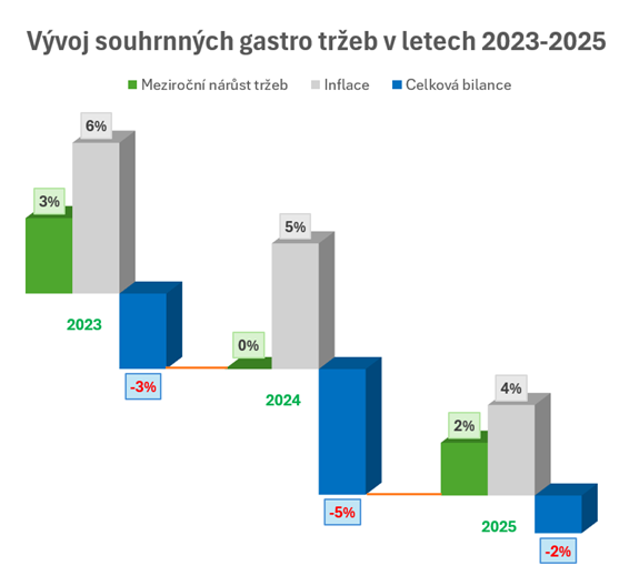I když má mnoho lidí pocit, že česká gastronomie se nadechuje, čísla dokazují opak. Důvody takového propadu jsou zejména enormní růst podnikatelských nákladů a mizející profitabilita provozovatelů,“ hodnotí člen představenstva Hospodářské komory ČR Luboš Kastner. Na vině jsou podle něj mimo jiné vysoká daňová zátěž – od spotřební daně přes DPH až po odvody zaměstnanců, a také změny spotřebitelského chování.