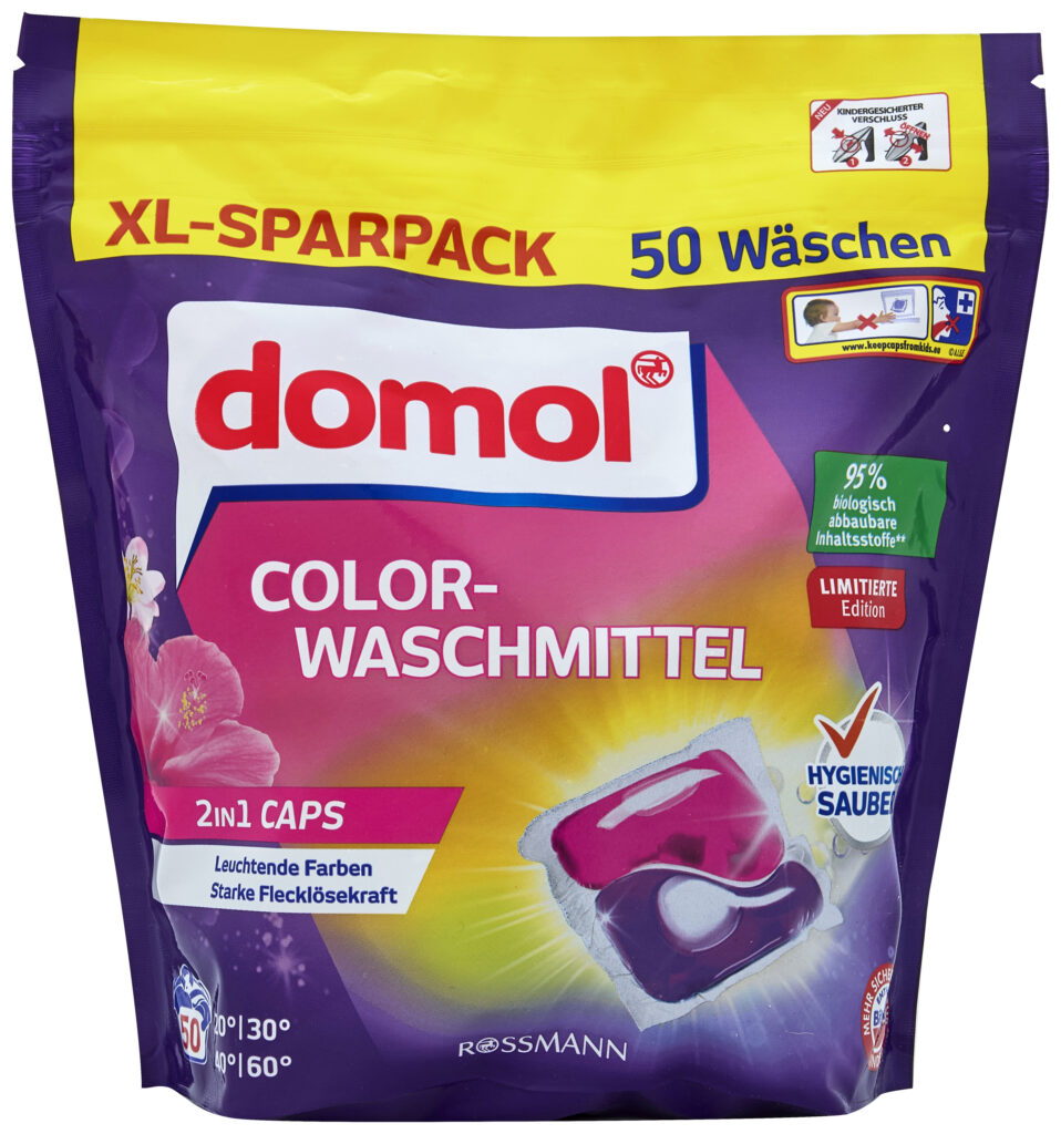 Proměňte běžné praní ve „voňavé povinnosti“. Domol kapsle na praní 2 v 1 zajistí, že vaše prádlo bude dokonale čisté, zářivé a jeho barva bude dlouhodobě chráněná díky aktivní ochraně barev a vláken. Silný dvoukomorový systém si hravě poradí i s nežádoucími skvrnami a mastnotou, takže vaše oblíbené kousky zůstanou jako nové i po několika praních. Díky osvěžující tropické vůni ibišku bude vaše prádlo vonět svěže po dokonalé čistotě. Jednoduché, účinné a stylové – přesně takové jsou prací kapsle domol.