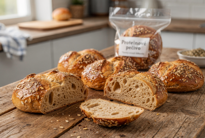 „Další velmi populární pečivo je proteinové, které se kombinuje s vícezrnným pečivem. Jde o skvělý způsob, jak si vychutnat oblíbené sacharidy, ale s mnohem lepším nutričním profilem. Pokud se snažíte zvýšit příjem bílkovin, zhubnout nebo si jen udržet stabilnější hladinu cukru v krvi, je tento druh pečiva trefa do černého. Oproti běžnému bílému pečivu má také nízký glykemický index a podporuje růst svalů, ale bývá většinou dražší,“ doplňuje chlebový someliér Stanislav Janíček.